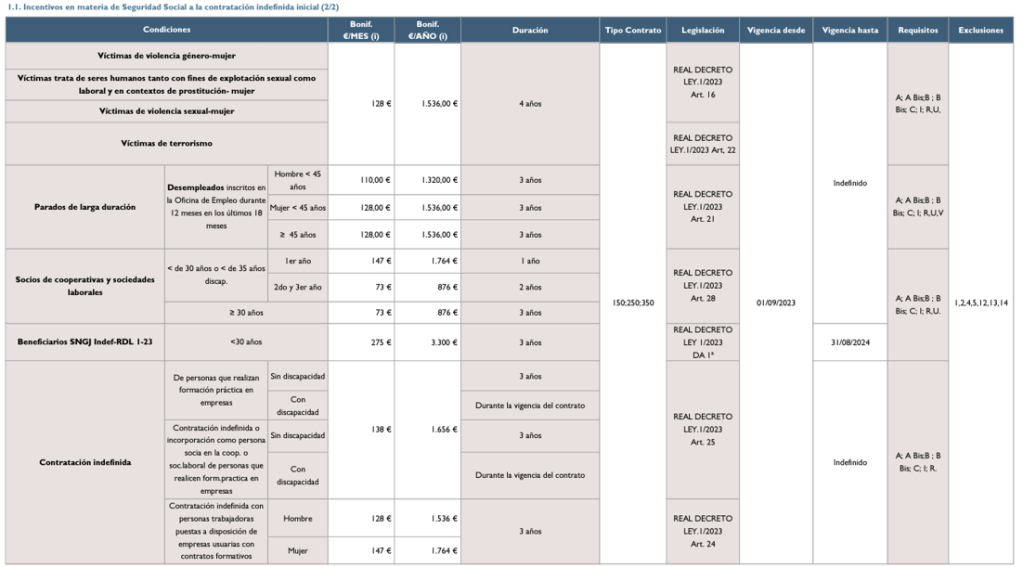A continuación voy a adjuntar las tablas con los distintos incentivos en materia de Seguridad para estos colectivos en riesgo de inserción socio-laboral: